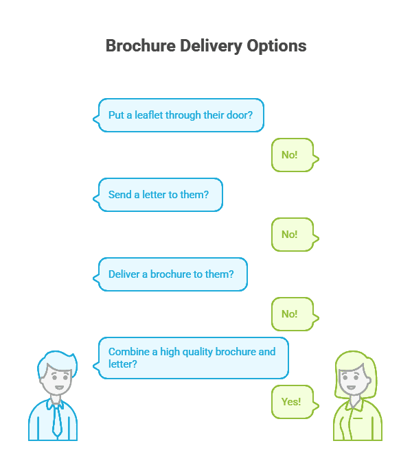 But when the brochure is being sent to a specific house address, especially where you know that someone in that property has recently visited your website and likely compared you with competitors, the brochure alone is not enough.